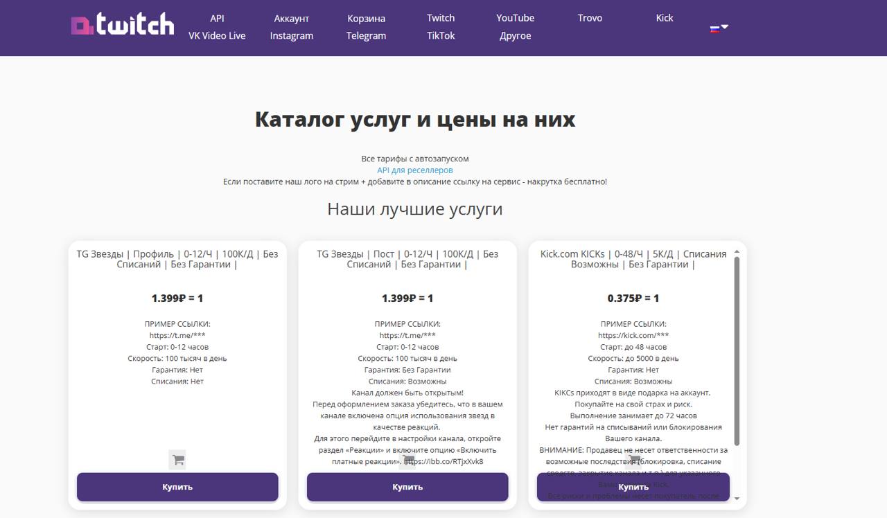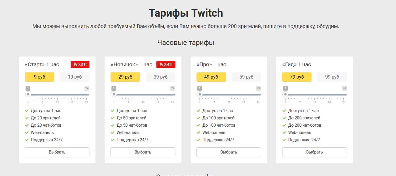 Рассмотрим четыре сервиса, которые занимаются услугами накрутки зрителей на твич и демонстрируют разные подходы работы с клиентом.